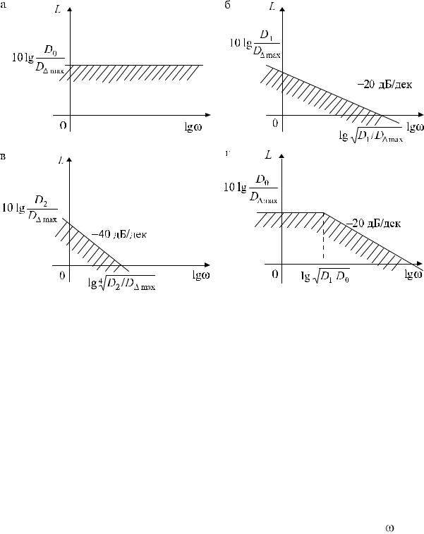Если же в силу специфических особенностей конкретного возмущения его спектральную плотность Sf ( ) нельзя считать постоянной в пределах полосы пропускания системы, то синтез системы можно осуществить методом последовательных приближений. В этом случае на каждом промежуточном шаге определяют вариант системы в виде соответствующей ЛАХ, которая строится с использованием запретных областей, обеспечивающих ограничение динамической ошибки, затем определяется величина Dу(f) и проверяется выполнение исходного требования по обеспечению точности ее работы в виде условия (6.14). После соответствующих уточнений, обычно в виде оценки верхней границы разрешенной области для ЛАХ разомкнутой системы, приступают к следующему шагу итерации и т. д.