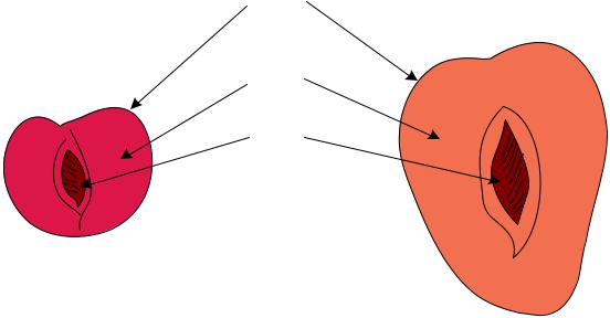 Рис. 2. Строение плодов вишни (а) и сливы (б): 1 – кожица; 2 – плодовая мякоть; 3 – семя