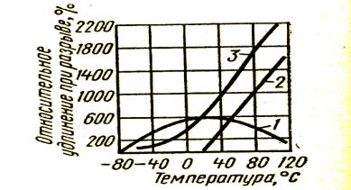 Рис. 5.4. Зависимость относительного удлинения при разрыве от температуры: