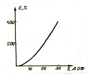 Рис. 5.6. Зависимость относительного удлинения при разрыве поливинилхлорида от содержания диоктилфталата