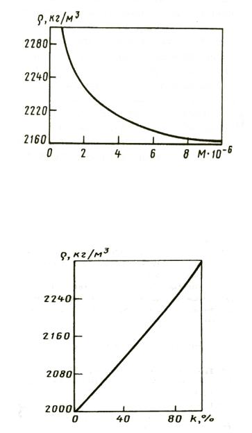 Плотность фторопласта-4 зависит от его молекулярной массы М (рис. 5.7) и степени его кристалличности (рис. 5.8).