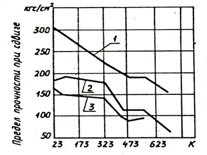 Рис. 5.17. Влияние температуры на прочность соединения различных металлических материалов клеем имидайт 850:
