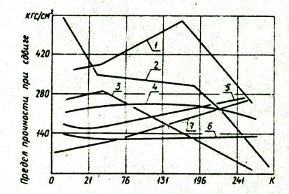 Рис. 5.18. Влияние природы полимера на прочность при сдвиге клеевых соединений при криогенных температурах: