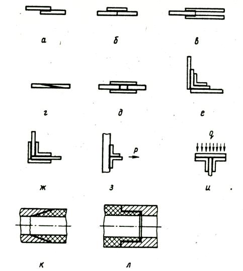 ж– с двойной накладкой; з, и – тавровые; к – цилиндрическое стыковое;