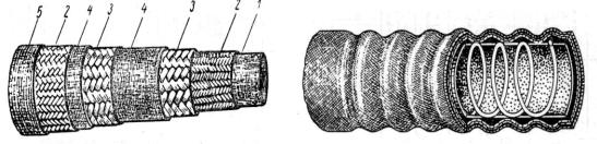 1– внутренний резиновый слой; 2 – тканевая оплетка; 3 – металлическая оплетка; 4 – промежуточный резиновый слой; 5 – наружный резиновый слой