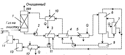 Рис. 3. Схема установки очистки газа от сероводорода вакуум - карбонатном