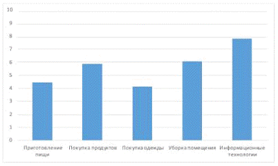 В бытовой сфере - возможность самообслуживания, т.е. умение самостоятельно закупать продукты, приготовление пищи, покупка необходимых предметов одежды и обуви, предметов, необходимых в быту;