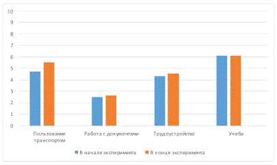 В социальной сфере - умение пользоваться транспортом, знание организаций социальной направленности и умение обращаться в них, заполнение официальных документов, осознание своей социальной роли в обществе, занятие трудовой и учебной деятельностью;