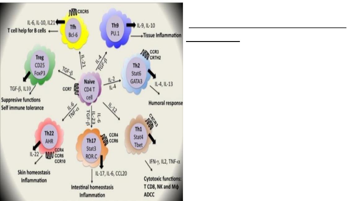 Th1, Th2, Th9, Th17, Th22, Tfh.
