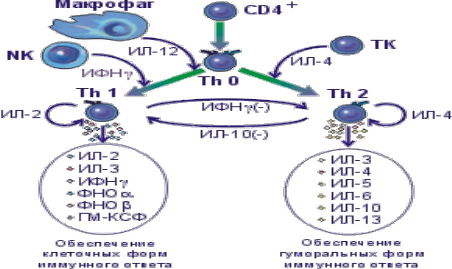• Цитокины синтезируемыеTh1 и Th2 подавляют развитие Th17