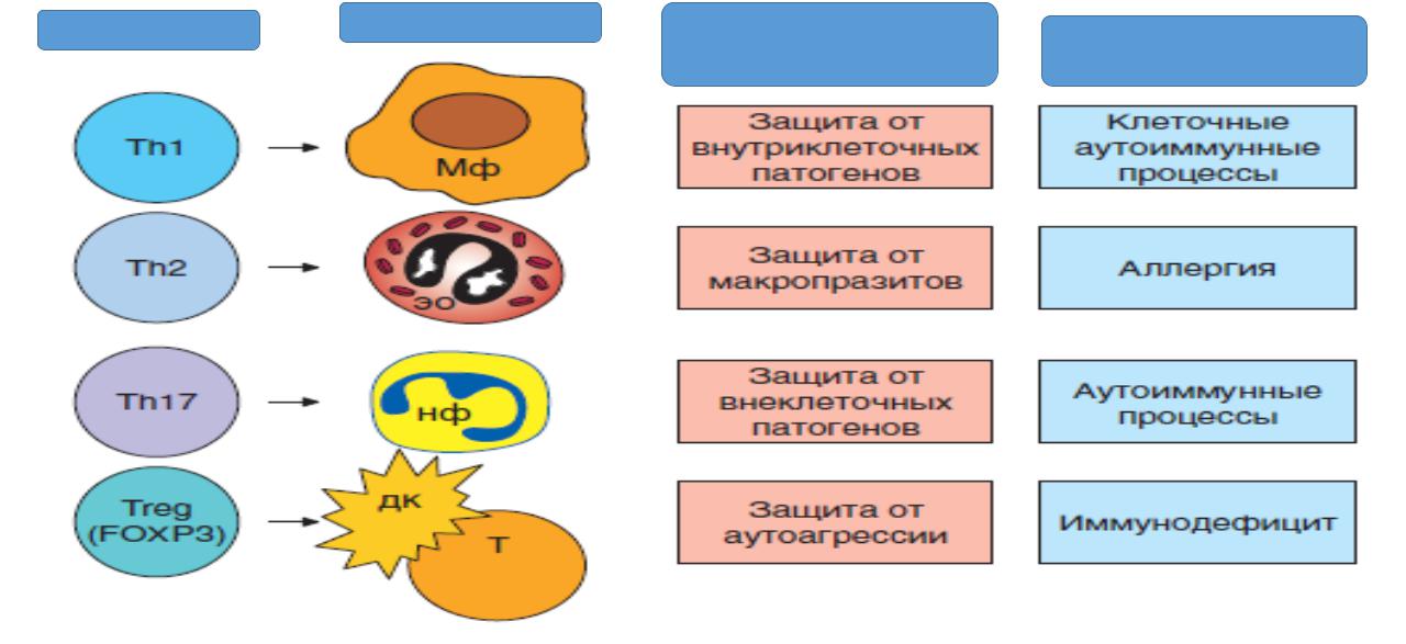 Адаптивные популяции Т-клеток, клетки партнеры, физиологические и патологические эффекты