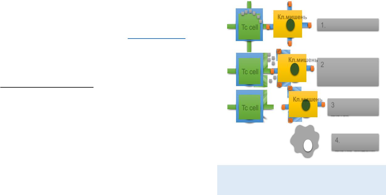 (с помощью перфоринов и сериновых протеаз, и конечного апоптоза)