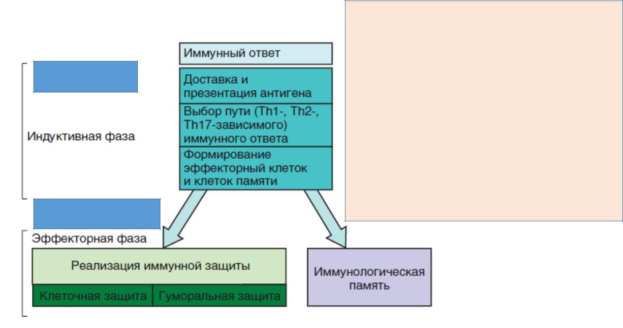 1.Момент включения ИО-презентация АГ и распознавание Т- л 2.Дифференцировка на несколько разновидностей Th-для реализации различных форм ИО 3.Исполнительные клетки (Вл, Тц) тоже распознают АГ ,а затем получают дополнительный стимул от Тh