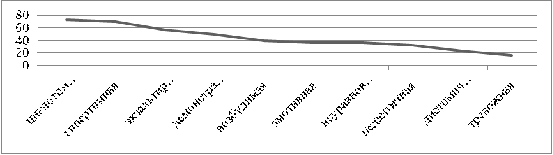 Исходя из проведенного исследования, можно сделать следующий вывод: В данной выборке преобладает циклотимная акцентуация характера 73,3%. На втором месте - гипертимная акцентуация - 70%. Экзальтированными являются 56,6% испытуемых. Демонстративная акцентуации характера - 50%. Возбудимая акцентуация встречается у 50%. Неуравновешенная акцентуация наблюдается у 36,6%. Эмотивная акцентуация встречается также у 36,6 %. Педантичная акцентуация встречается у 33,3 %. Дистимичными - 23,3%. Тревожная акцентуация характера присуща всего 16,6% испытуемых. Интересным представляется тот факт, что некоторые респонденты имеют несколько ярко выраженных типов акцентуаций характера.