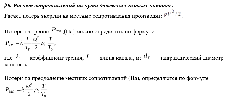 9. Сопротивления на пути движения газов.