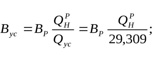 При оценке эффективности использования топлива применяется понятие условного топлива, т.е. топлива с теплотой сгорания =29309 Мдж/кг. При расходе расчетного топлива с теплотой сгорания расход условного топлива составляет: