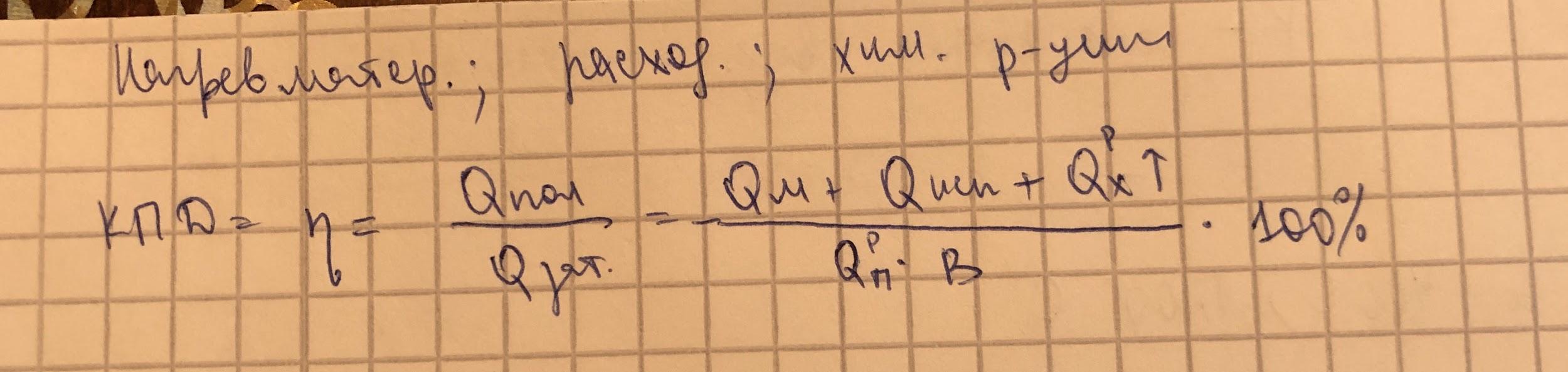 n=Qпр/Qрас=(Qм+Qкин+Qх^Р)/Qп^Р*В *100%