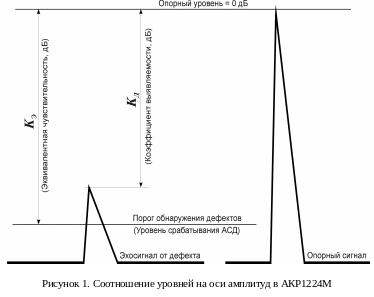 Эквивалентная чувствительность контроля эхометодом – отношение амплитуды эхосигнала от наименьшего отражателя, принимаемого за дефект, к амплитуде опорного сигнала.