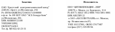 Мы нижеподписавшиеся представитель Заказчика директор ОАО “Брестский электромеханический завод” Олиферчик Д.Г. с одной стороны и представитель Исполнителя, директор ООО “АВТОМАТИЗАЦИЯ – 2000” Моложавый Ю.Л. составили настоящий Акт о том, что нижеперечисленная выполненная работа удовлетворяет условиям Договора.