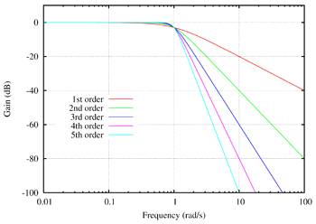Степень полинома знаменателя n определяет порядок фильтра. Реальные амплитудно-частотные характеристики лучше (более близки к идеальным) для фильтров более высокого порядка. Однако повышение порядка связано с усложнением схем и более высокой стоимостью. Таким образом, один из аспектов разработки фильтров связан с получением реализуемой характеристики, аппроксимирующей с некоторой заданной степенью точности идеальную характеристику при наименьших затратах.