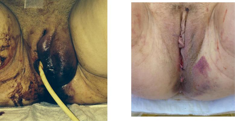 Результат комплексного лечения гематомы левой стенки влагалища, V=500мл.