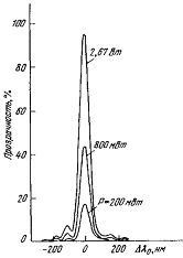 различных уровнях управляющей мощности соответствует перестройке длины волны