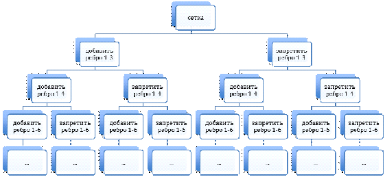 количества ребер к графу-сетке, то если алгоритм начинает с полного графа, то