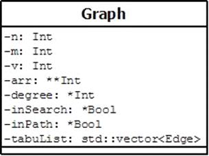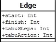 представляет собой структуру данных, которая содержит в себе начало ребра (start), конец ребра (finish), количество шагов алгоритма, на которое это ребро помещается в табу список (tabuSteps) и действие, которое запрещено делать (tabuAction).