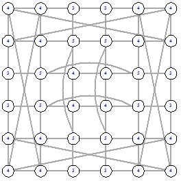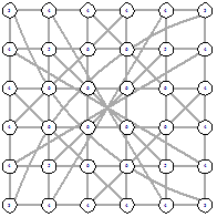 В этом же примере можно заметить, что алгоритм может давать разные решения при разном начальном графе. Далее будут приведены оптимальный графы размером 6х6 и 7х7 по одному для каждой функции расстояний.