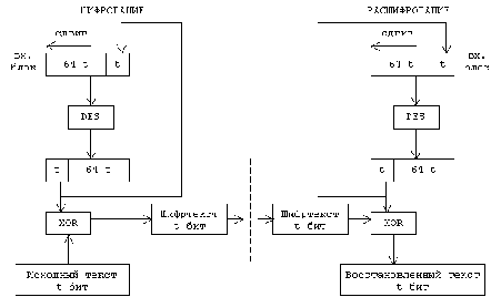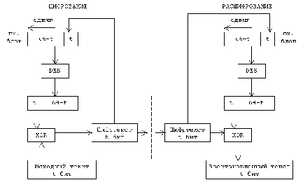 64-битового блока, шестнадцати циклах шифрования и, наконец, обратной