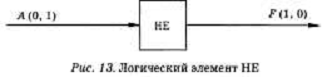 Логический элемент НЕ. На вход А логического элемента последовательно подаются два сигнала, на выходе получается последовательность из двух сигналов, значения которых определяются в соответствии с таблицей истинности логического отрицания (рис. 1).