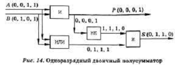 2. Одноразрядный двоичный полусумматор.