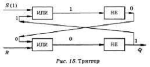 хранить 1 бит информации). Для построения триггера достаточно двух логических