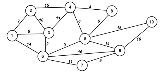 Рис. 26. Граф. Пример сети для алгоритма Дейкстры.