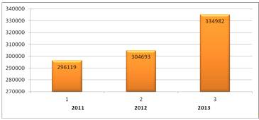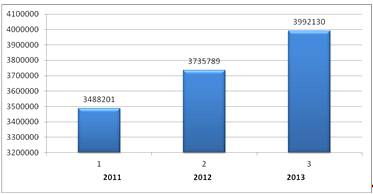 3735789 обращений, в 2013 г. - 3992130 (прирост за три года составил 20%)