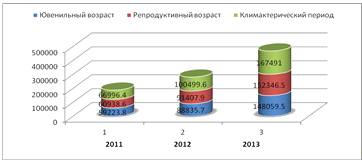г.); климактерический период - 70112,0 (2011 г.), 74300,0 (2012 г.), 81776,5