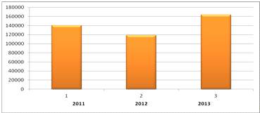 140224 выезда, в 2012 - 118,600, в 2013 - 163553 выездов (диагр.5).
