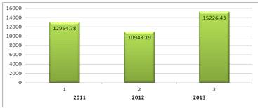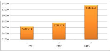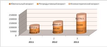 репродуктивный возраст - 42067,2 (2011 г.), 44580,0 (2012 г.), 49065,9 (2013