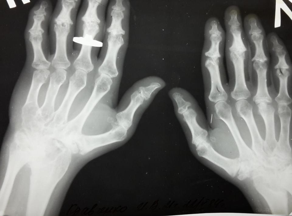 •Поражение кисти при ревматоидном артрите.