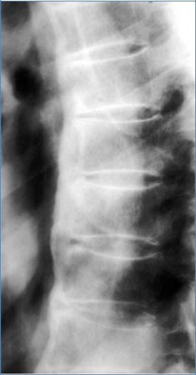 •Обызвествление продольных связок делает такой позвоночник неподвижным.