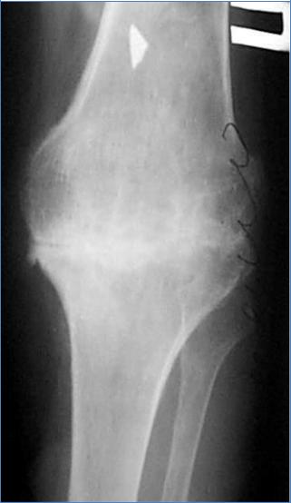 •Пример – анкилоз коленного сустава, фиброзный, начальная фаза костного анкилоза.