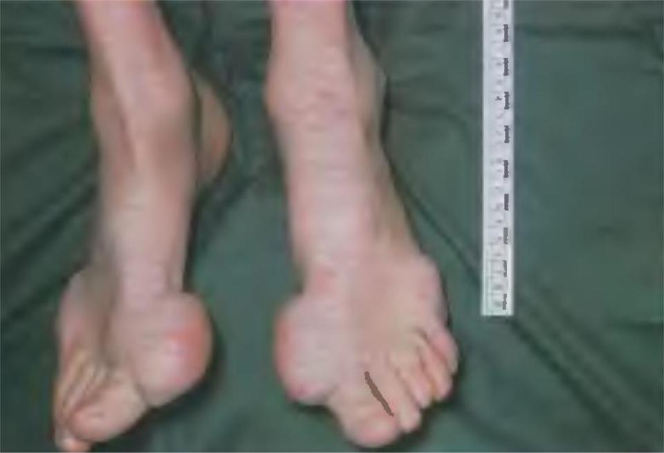 Гигантские подагрические тофусы стоп: