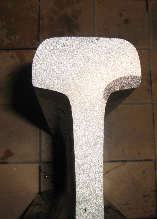Излом произошел в шве сварного стыка вертикально по всему сечению рельса. Поперечный излом рельса произошел в шпальном ящике. Визуальным осмотром сечения частей излома рельса установлено, что причиной излома явился локальный концентратор напряжений в виде темного пятна размерами 10х15 мм в шейке рельса на расстоянии 52 мм от поверхности катания с дальнейшим развитием хрупкого излома. Код дефекта согласно НТД/ЦП-1,2,3-93г. – 56.3. Предположительно причиной возникновения дефекта послужило наличие недостаточной величины осадки металла при сварке (холодная сварка). Для установления причин образования концентраторов напряжения части рельса направлен на экспертизу.