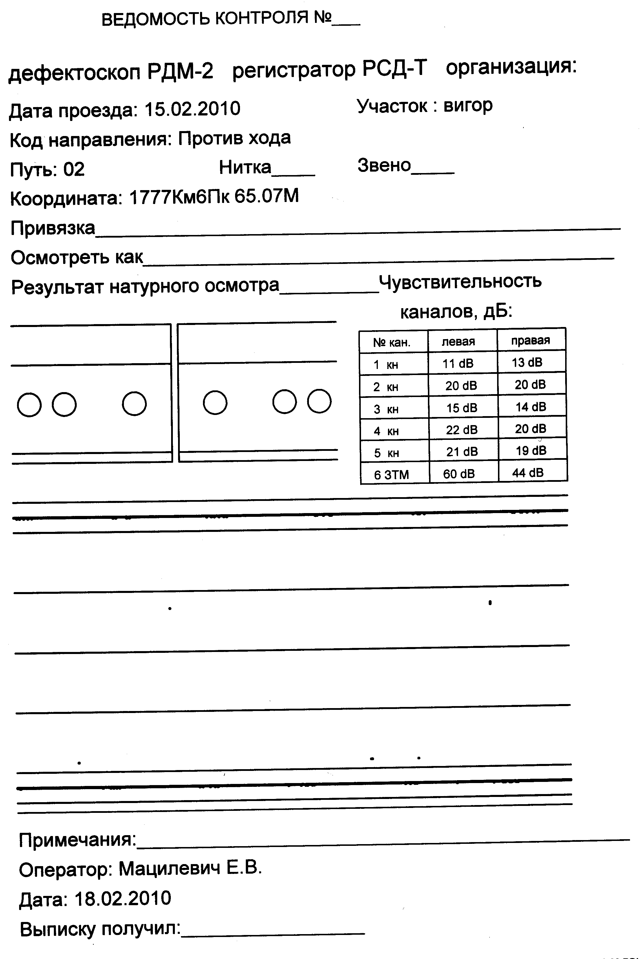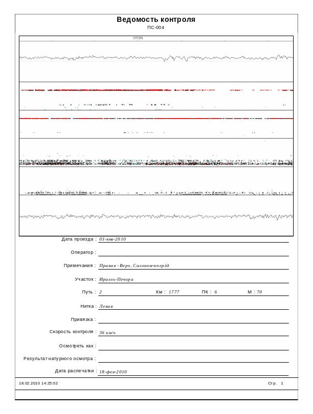 - 19.01.2010 г. – дефектоскопная тележка Авикон – 01 № 3506 – операторы Новоселов, Овчиников (дефектов выявлено не было), отметок на вторичный контроль не выдавалось.