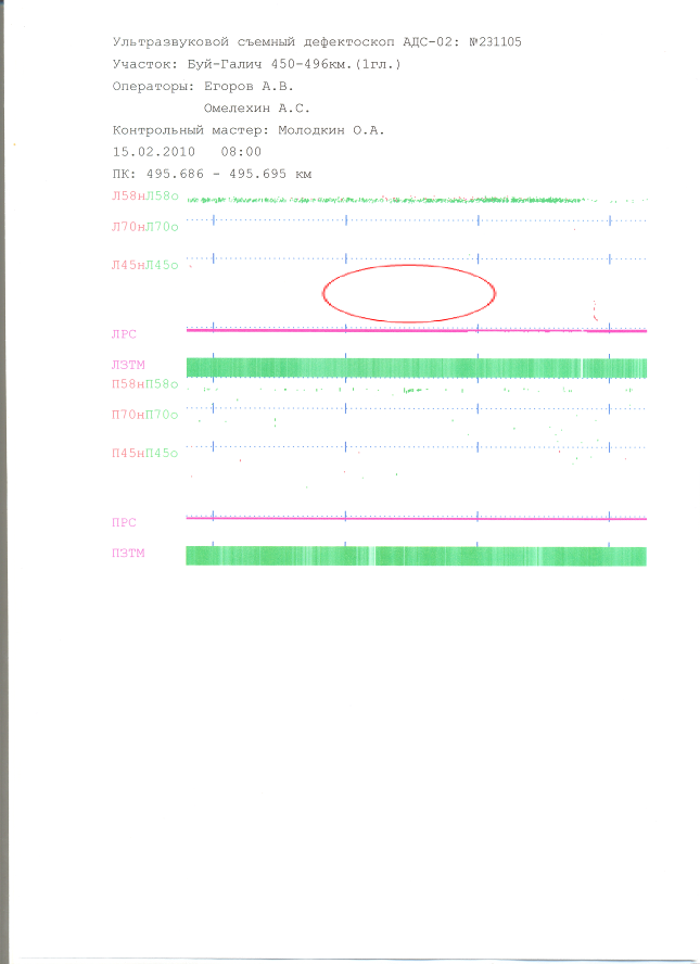 - 01.02.2010 г. дефектоскоп РДМ-22 № 579 регистратор встроенный оператор Здорнов, сигналов от дефекта нет;