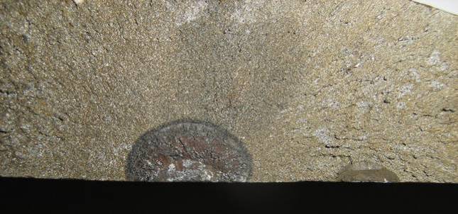 Расположения дефекта по сечению рельса в подошве рельса 2 пятна, одно в проекции шейки рельса высотой 7 мм, второе высотой 2 мм вне проекции шейки рельса. Развитие дефектов произошло от поджога в зоне работы контактной губки сварочной машины, расстояние от сварного шва 130 мм. Сварной стык проверялся в пути 28.05.2008 г., дефектоскопом РДМ-3 № 502 оператор Марданов, 7-го разряда, стаж работы 12 лет.