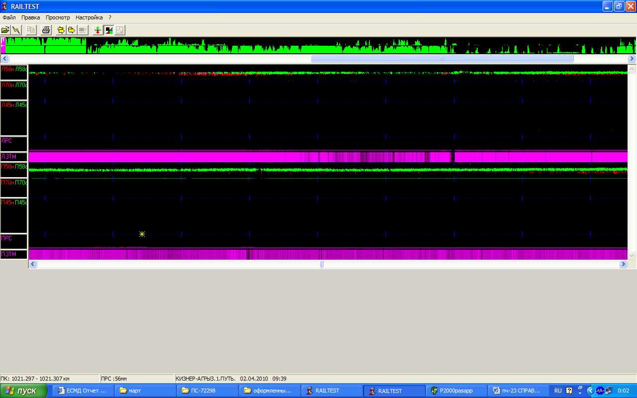 - 08.02.2010 г. дефектоскоп РДМ-22 № 48 регистратор встроенный операторы Шакиров, Марданов, сигналов от дефекта нет;