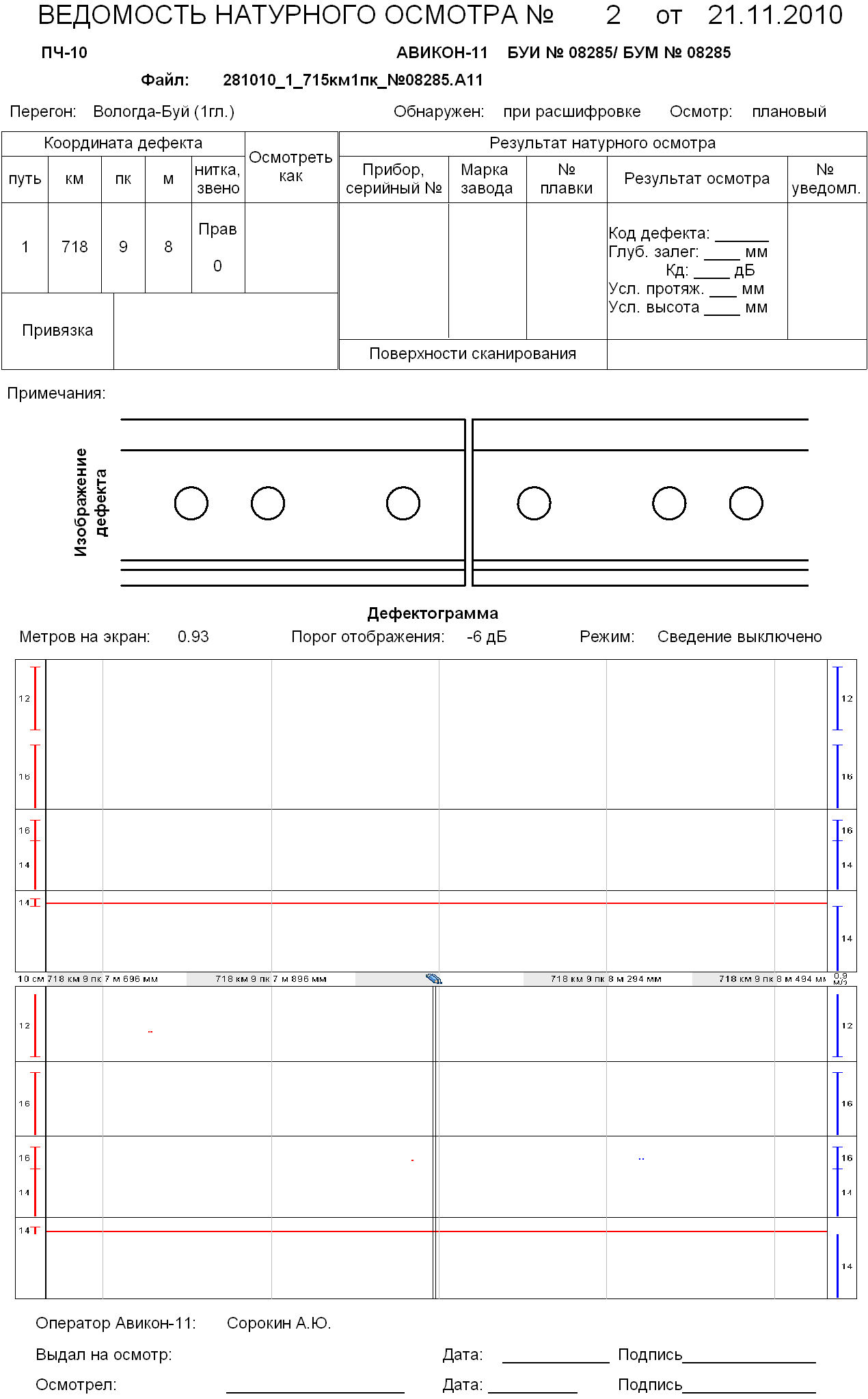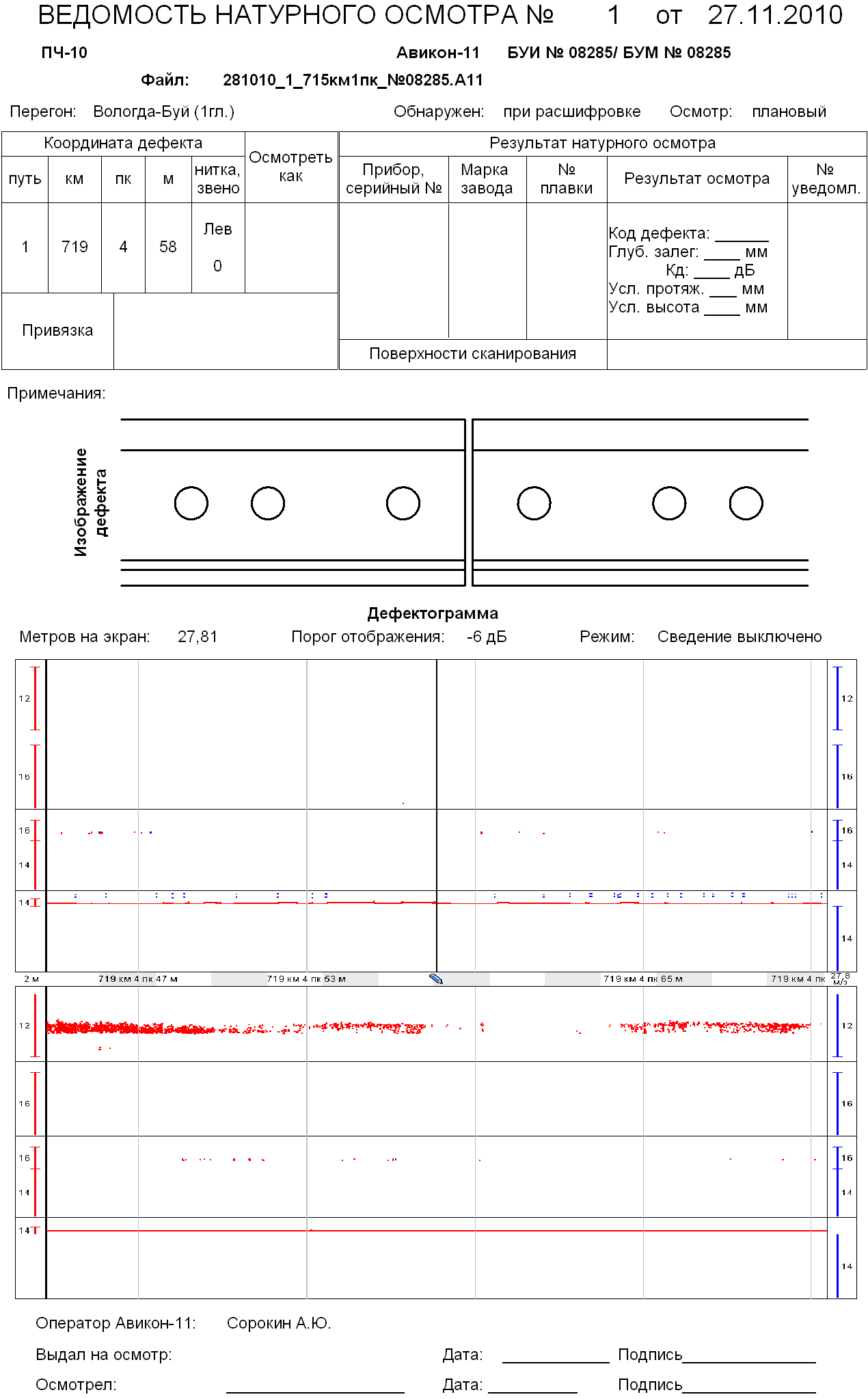 Дефектограмма ПС-024 от 26. 11. 2010 г.