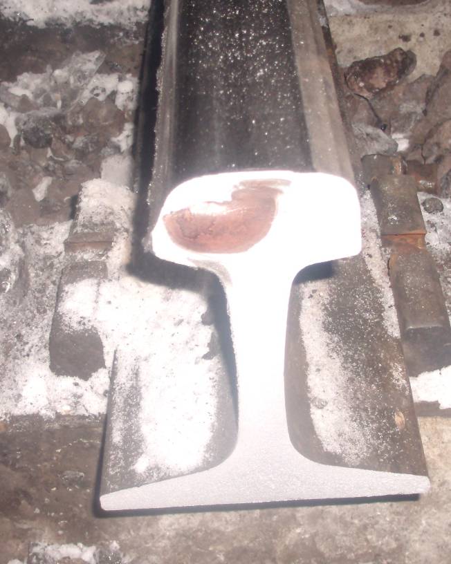 8. Предполагаемая причина излома – излом рельса произошел из-за развития поперечной трещины с рабочей грани головки рельса вследствие недостаточной контактно-усталостной прочности металла.