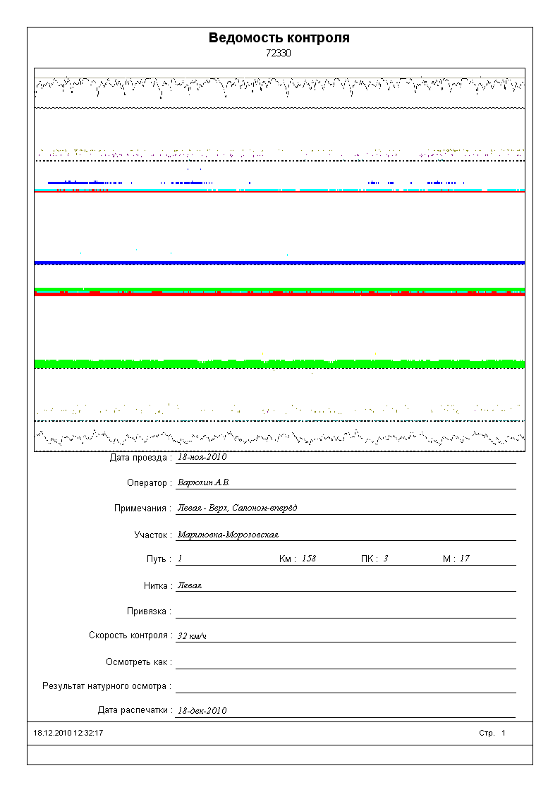 - 18.11.10 г. вагоном – дефектоскопом №72330 сигналов от дефекта не обнаружено
